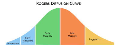 So we follow the leaders ahead. We unconsciously copy the behaviors of people in the Early Majority or Early Adopters at best. The Early Adopters get the gold and we're left with the worth-less pebbles.